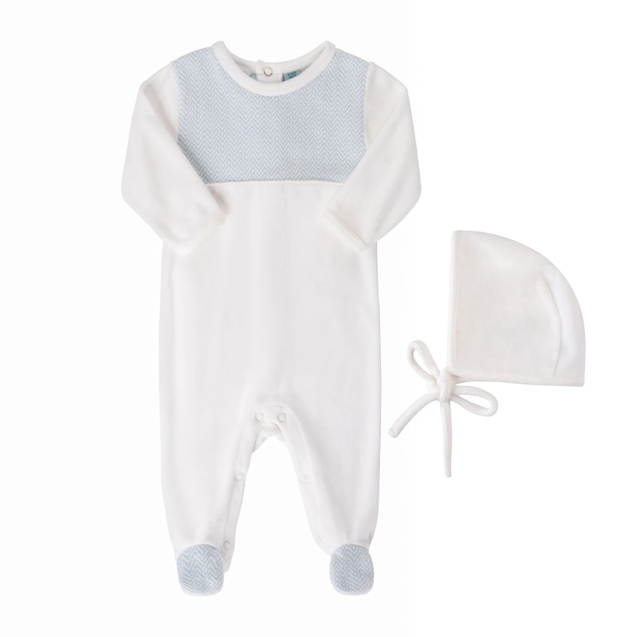 Looking for great go-to outfit for your little one this season? This velour winter romper from Feltman Brothers will keep Baby toasty warm without sacrificing on style! Comes in 3 classic colors, and includes a matching hat.