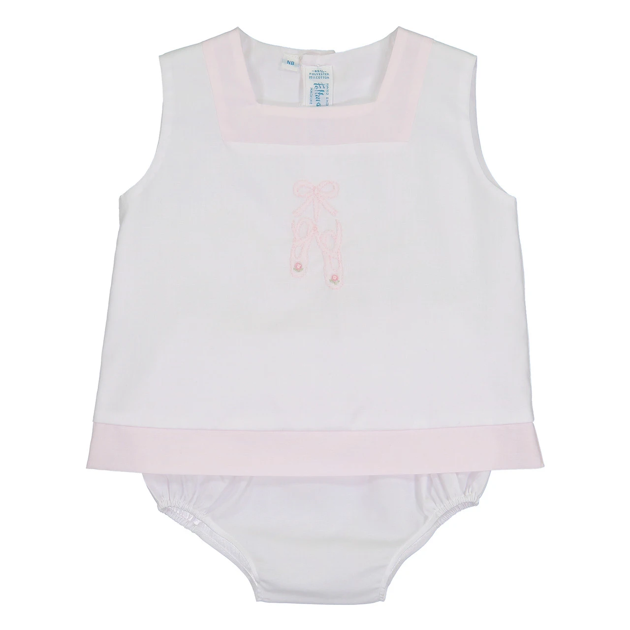 The most adorable, dainty diaper set you’ve ever seen! This classy baby girl outfit is oh-so-sweet, with its elegant embroidered ballet shoes, and its breezy, springy fabric.Â