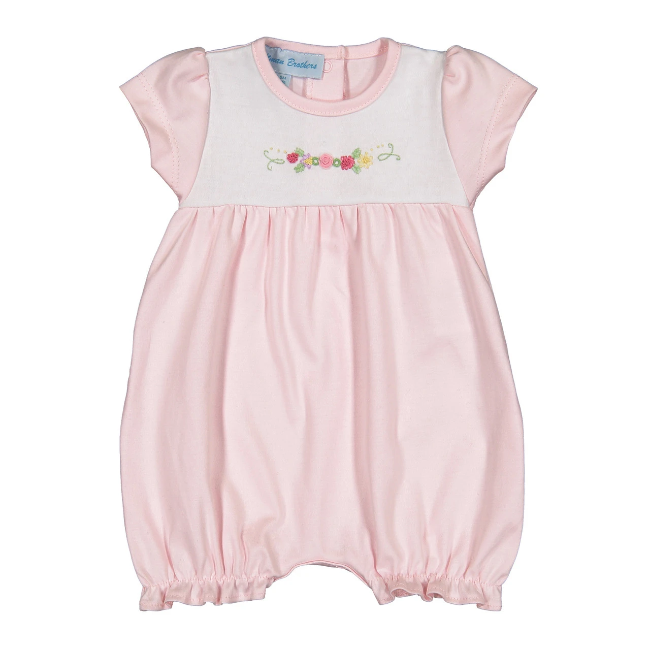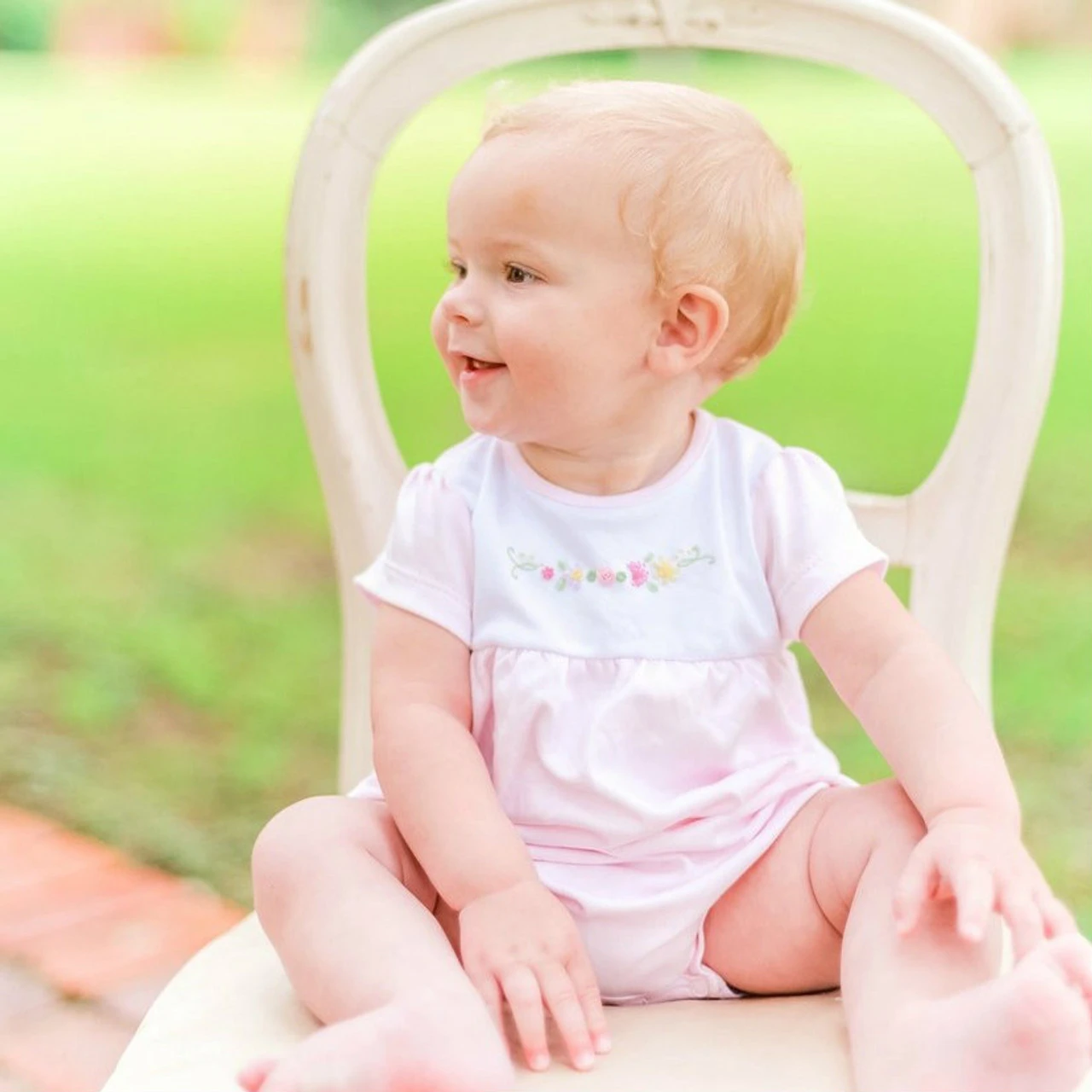 Meet the Pima Blossoms Shortall – the perfect new addition to your loved one’s wardrobe! This soft cotton outfit is made of a pretty pink body and white bodice, embellished with a hand-stitched floral design. Your baby girl is sure to melt hearts in this beautiful, vintage-styled piece!