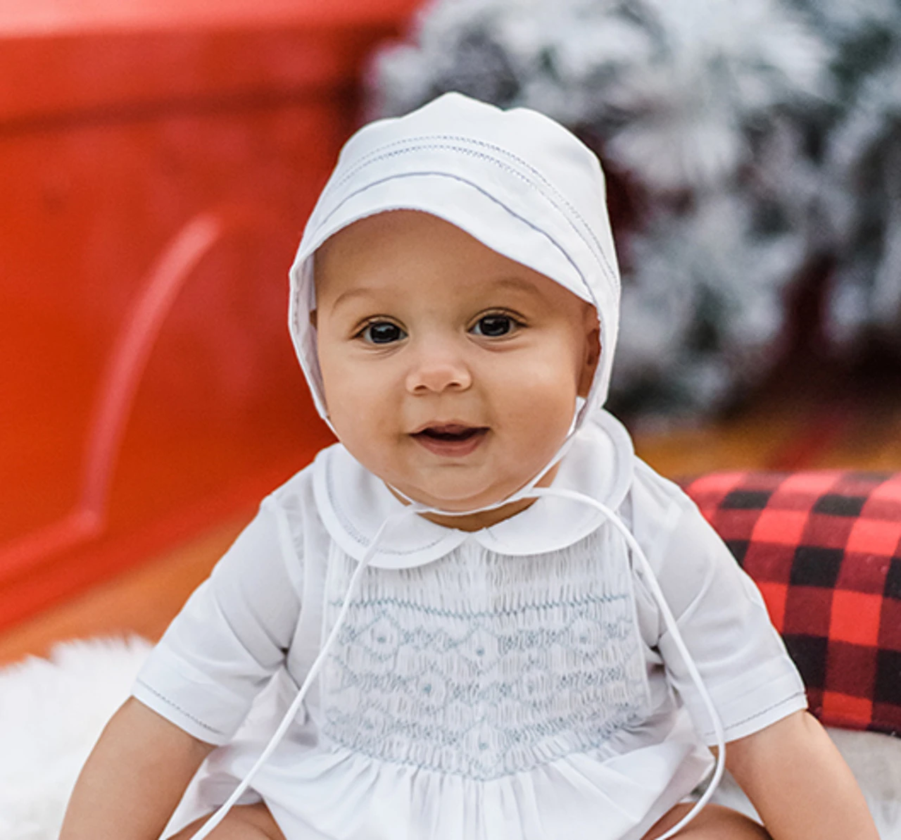 The perfect bonnet for your little boy! This simple yet classy baby bonnet is made of pure white and features a double row of fagoting, a sweet little brim, and a ribbon for convenient fastening beneath the chin. Coordinates beautifully with our mock vest longall and shortall – buy as a set and you’ve got the perfect special occasion outfit for your little one’s big day!