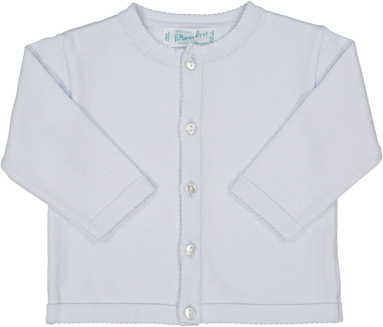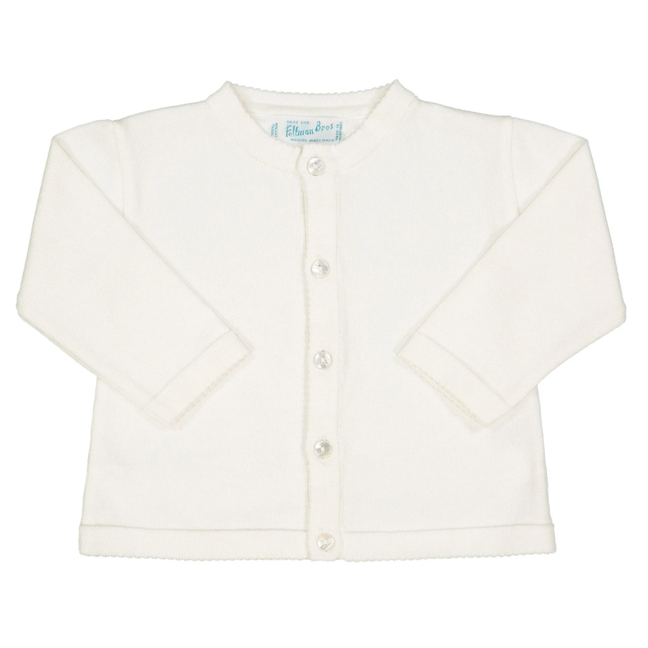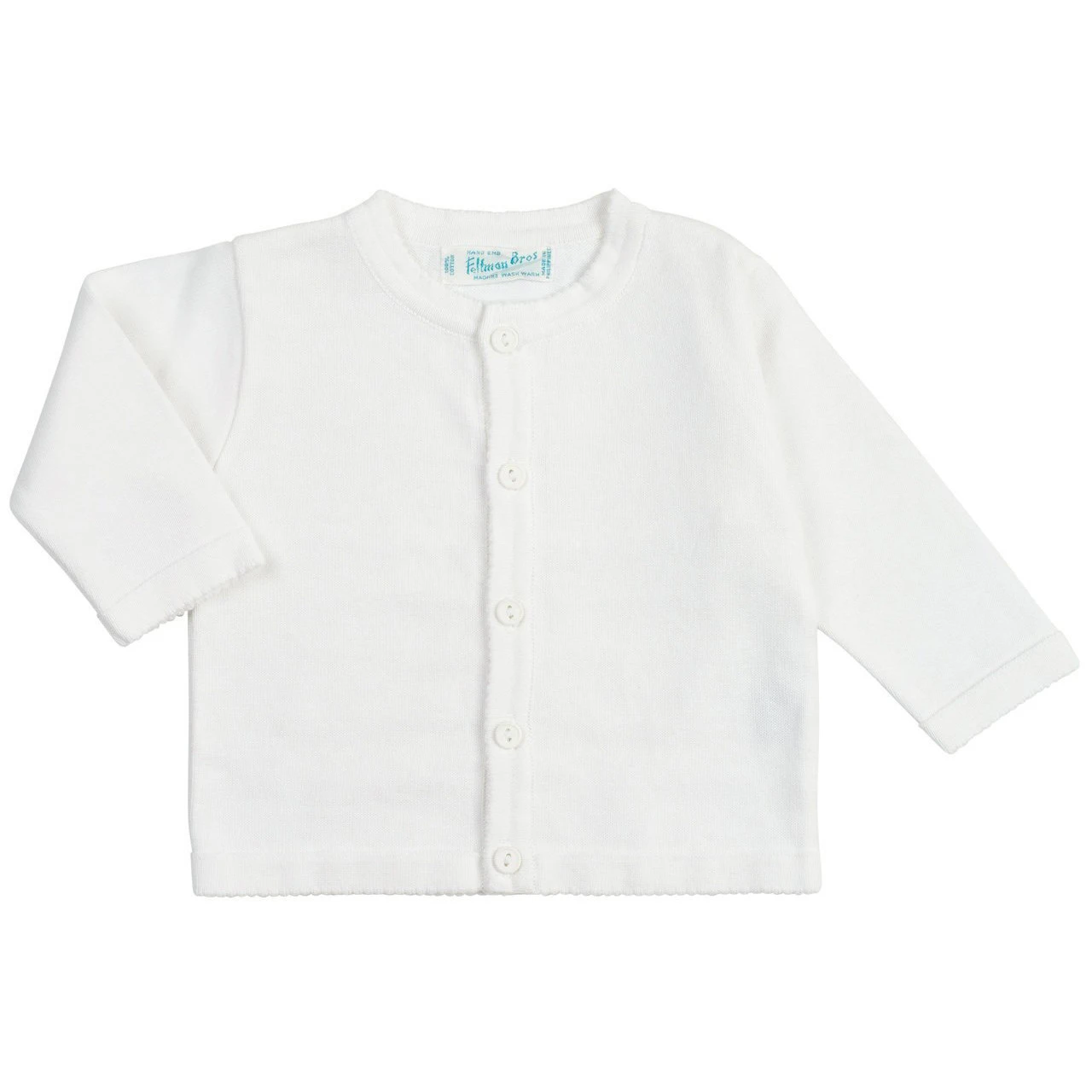A cardigan as versatile as it is classy! This knit cardigan comes in white, navy, and red with a button-down front, giving you the option of being worn open on top of an outfit, or closed as its own piece. With its soft and warm knit, this cardigan will keep your little one warm and cozy all the time. The perfect piece for layering on top of holiday outfits, special occasion sets, or everyday layette. Crisp, cute, and oh so classy!Â