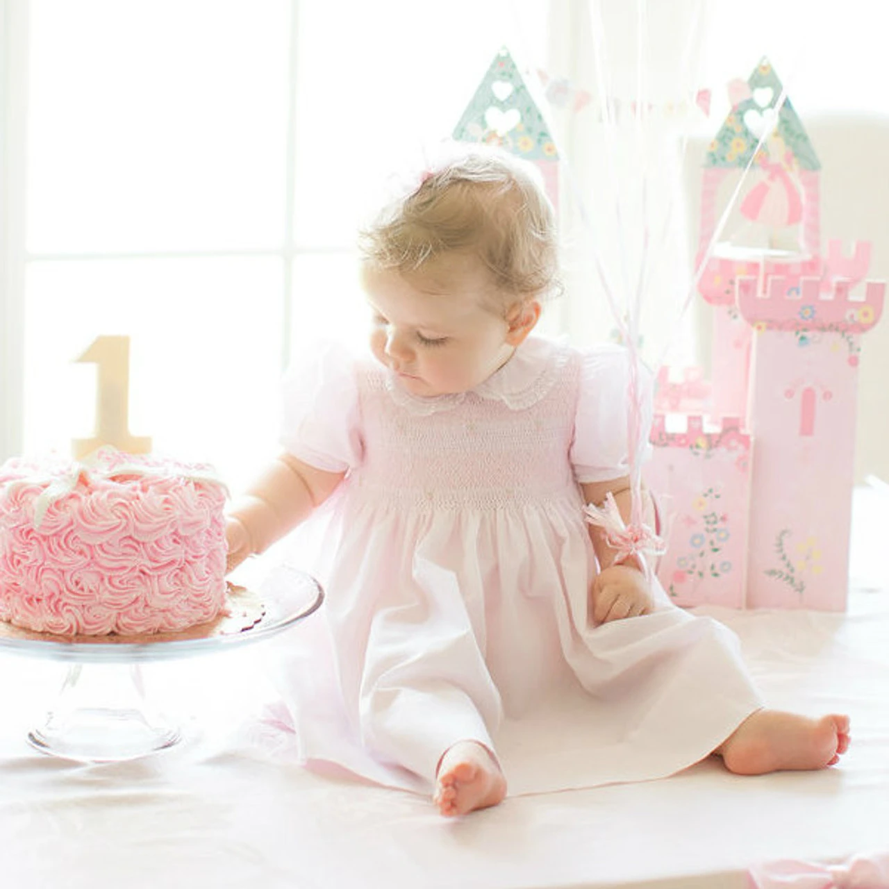 A beautiful smocked dress, unlike any other! This dainty little girls dress is a true classic with its embroidered smocked bodice, delicate fagoting, and fluted lace trim. Available in pink, white, and blue with a sweet peter pan collar and short puffed sleeves, edged with dainty fagoting and a fluted French lace trim. A classy smocked bodice features intricate hand made embroidery including a diamond overlay, soft white lines, and darling floral bullions. Ties in the back with a big classy bow for an elegant finish. The perfect dress for Easter, formal events, or everyday layette. The Feltman Brothers Lacy Smocked Dress – set to become a treasured family heirloom for generations!