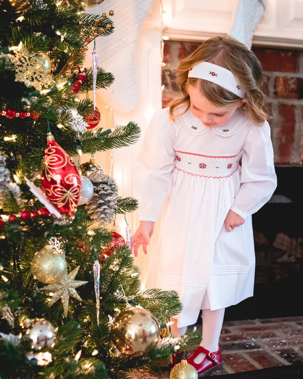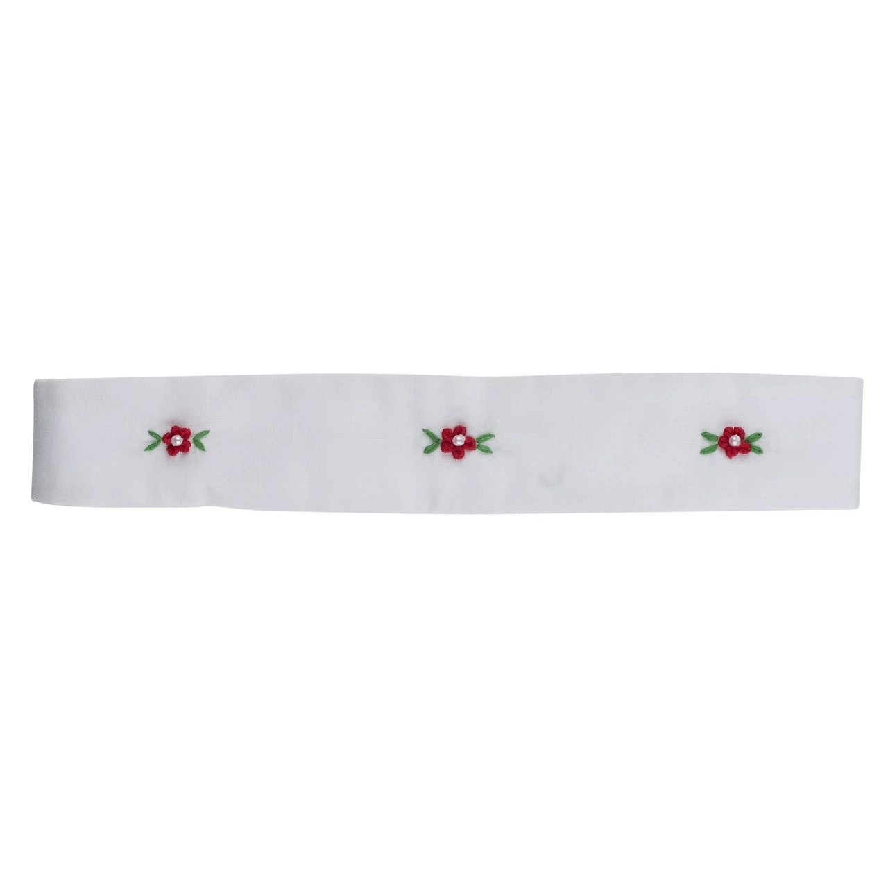 There is something so endearing about a little girl in a dainty headband. This pretty white holiday headband features hand made flower bullions with pearls in the center, and is a beautiful accessory for so many Feltman Brothers holiday outfits. Sweet little girls in sweet little headbands – how much cuter can you get?Â