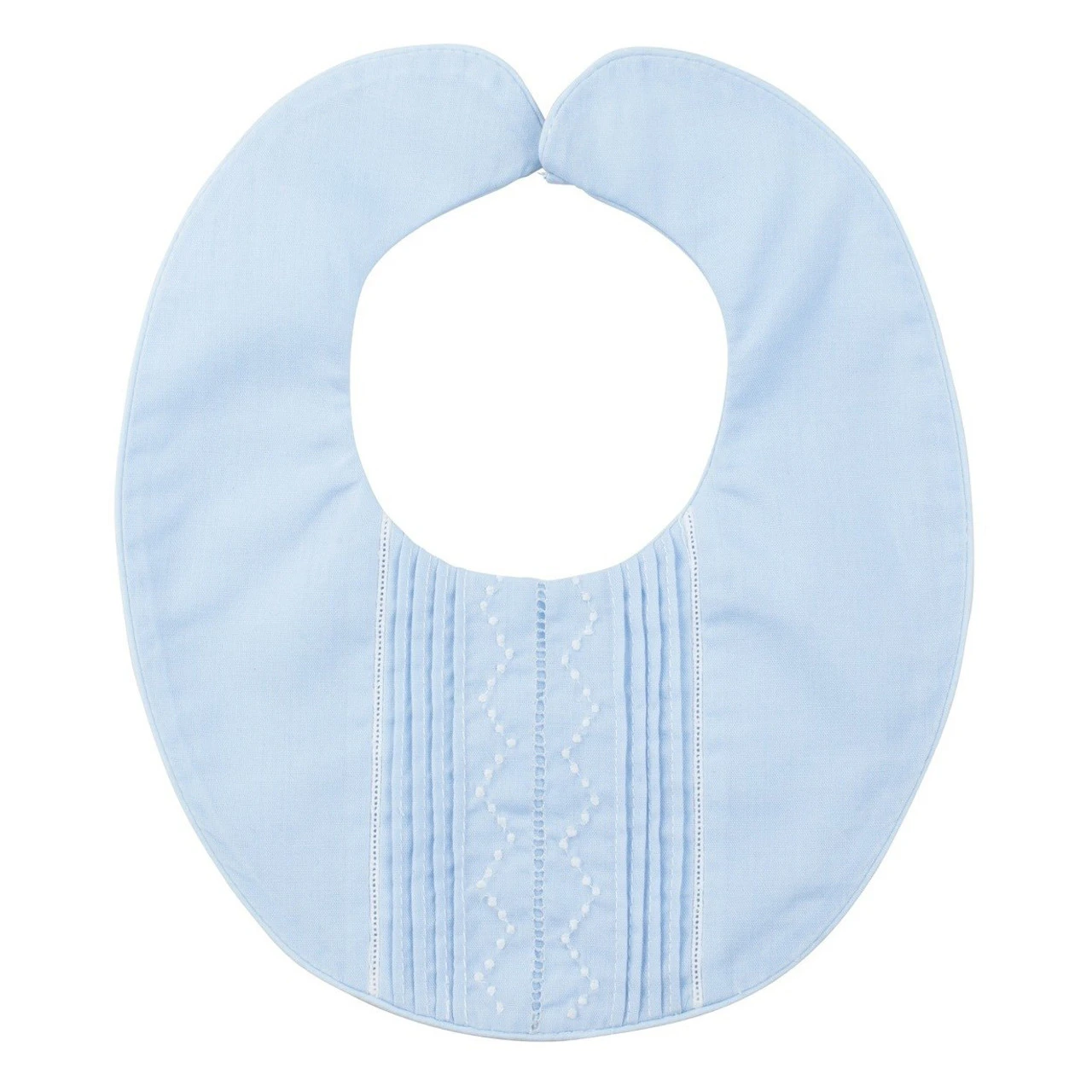 Protect your little one’s gown, romper, or bobby suit with a coordinating vintage style bib. This classy baby boy accessory is made with beautiful details down the center –Â fine pintucks and beading lace beside intricate hand embroidery and a central row of boring. With a bib so elegant, you won’t want your prince to get dirty at all…