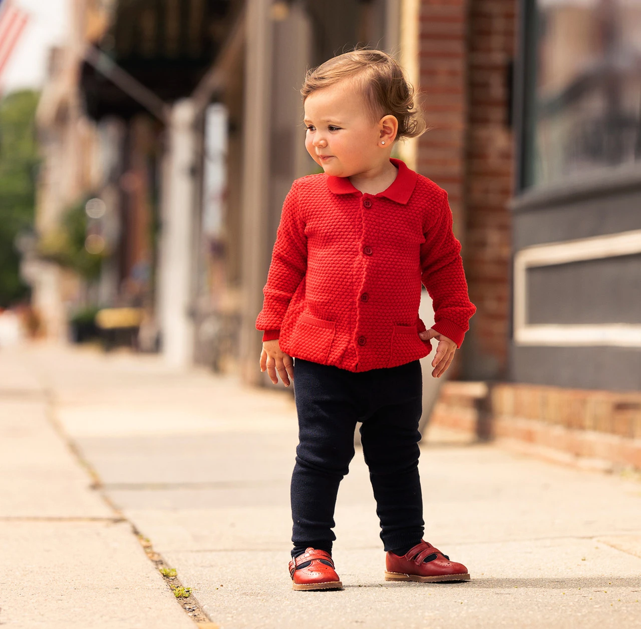 Looking for a great all-around sweater that will match pretty much anything? This brand new knit cardigan is just the thing! Available in Red, Ivory, Ecru and Navy classic colors and sizes 3m – 4T, perfect for both girls and boys. A must for your little one’s wardrobe this winter!