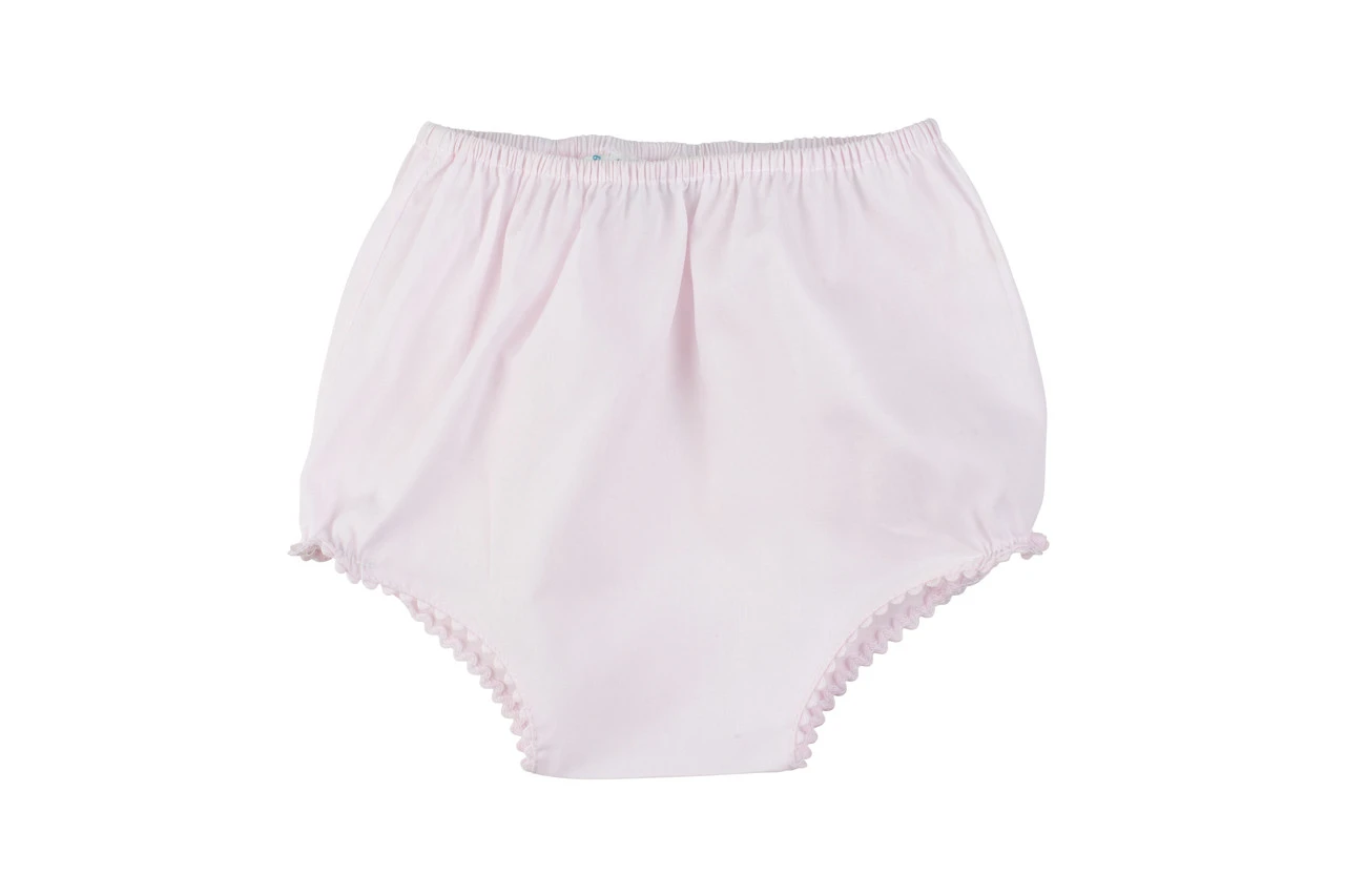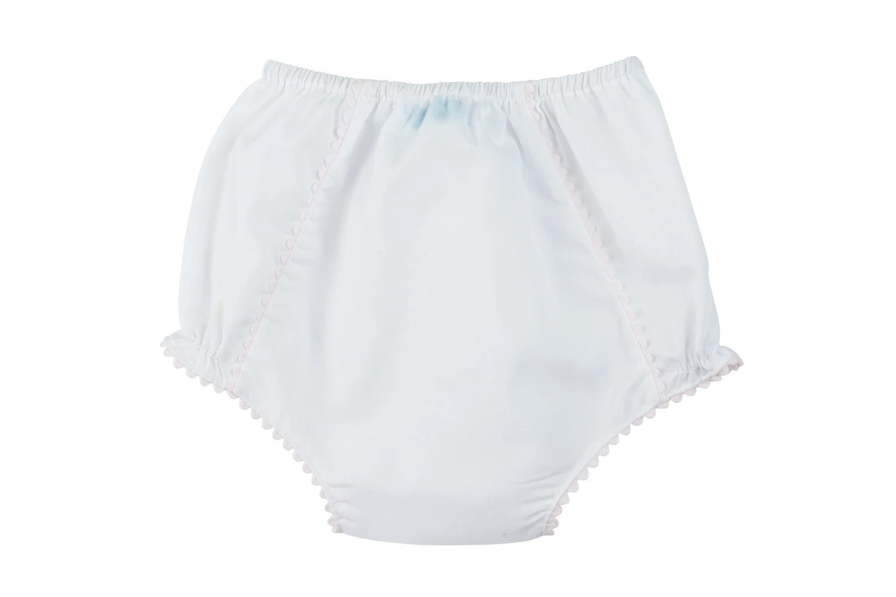 The perfect diaper cover for your little one! This sweet accessory comes in pink and white with ric rac lace trim at the seams and leg openings, and matches so many of your loved one’s outfits for that perfect added touch. Whether for Easter wear, Baby’s first portrait, or everyday layette, this classy diaper cover is just the right finishing detail.