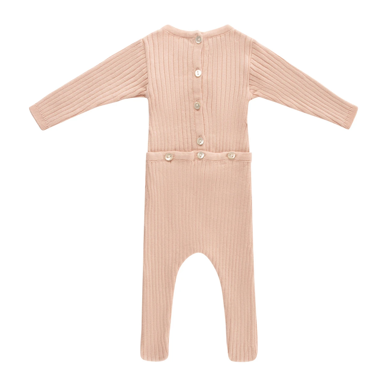 Meet a timeless knit baby romper, made of the softest, warmest cotton, with a matching bonnet included! Romper and bonnet are both made of classic ribbed knit with the sweetest scalloped trim. Matching knit baby blanket available as well, for a complete layette set!