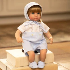 A classy, vintage style longall for your little prince. This elegant outfit is just right for your little boy, with its soft white color and beautiful details. The longall features delicate fagoting along the peter pan collar and tiny waist tabs, as well as a smocked bodice covered in lovely diamond hand embroidery, (available in either white or blue.) Perfect for special occasions, when you really want your loved one to steal the show!