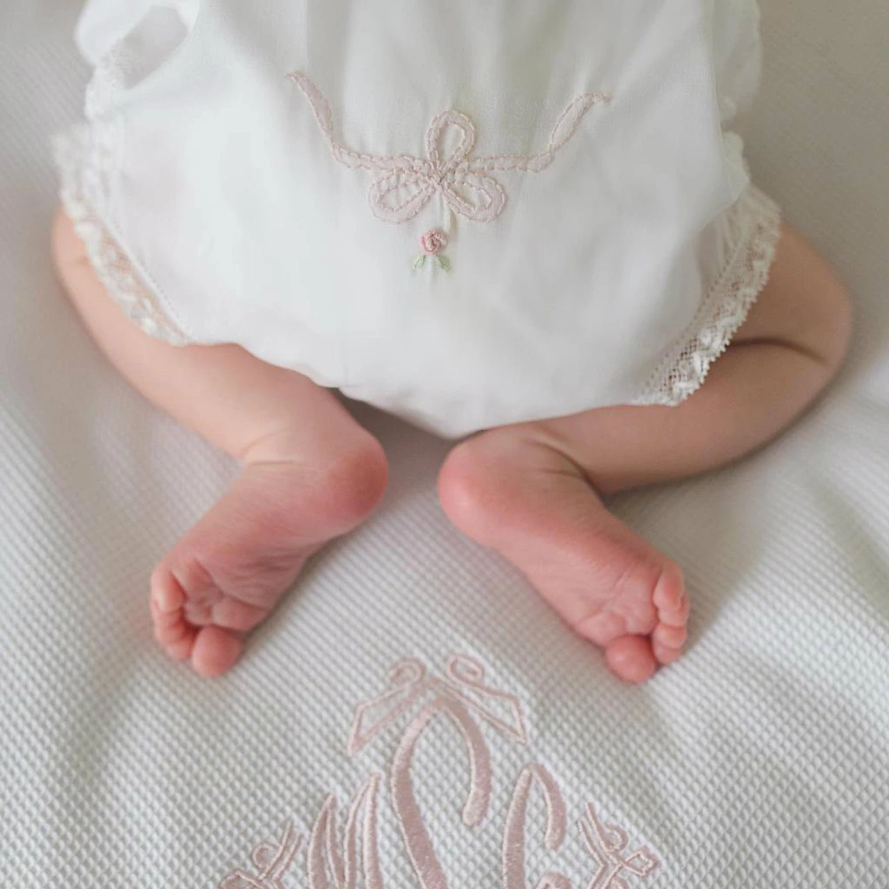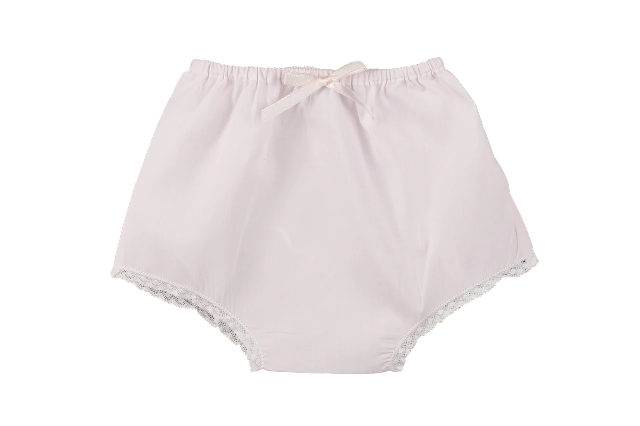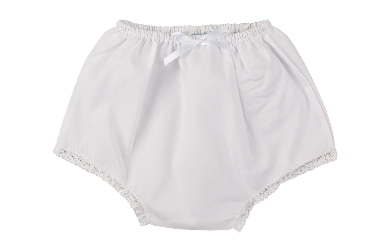 Classy and oh so cute! This lovely diaper cover for girls is beautifully designed with French lace trimming and intricate hand embroidery on the front – a dainty shadow stitch bow with one sweet little flower bulion. Features an elasticized waist band and dainty satin bow on the back. This vintage style baby accessory is the perfect piece to add to your little girl’s wardrobe to finish off any outfit!